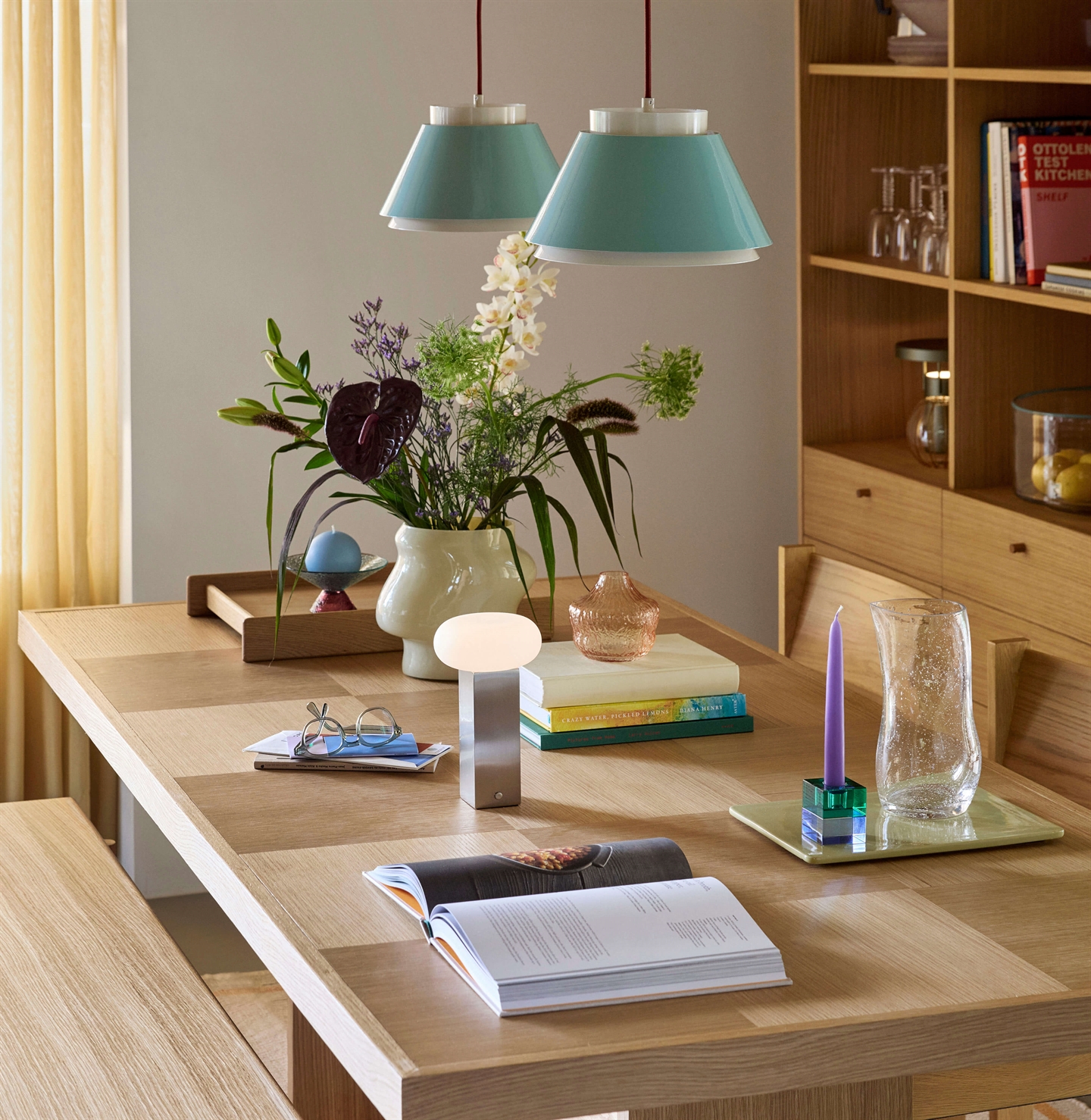 Designet er enkelt og tidløst med en afrundet skærm og en base med en mere skarp form og vil passe naturligt ind i både moderne og klassiske indretninger. Skærmen i opalglas spreder lyset blødt og jævnt i rummet og skaber en indbydende atmosfære uden hårde skygger.