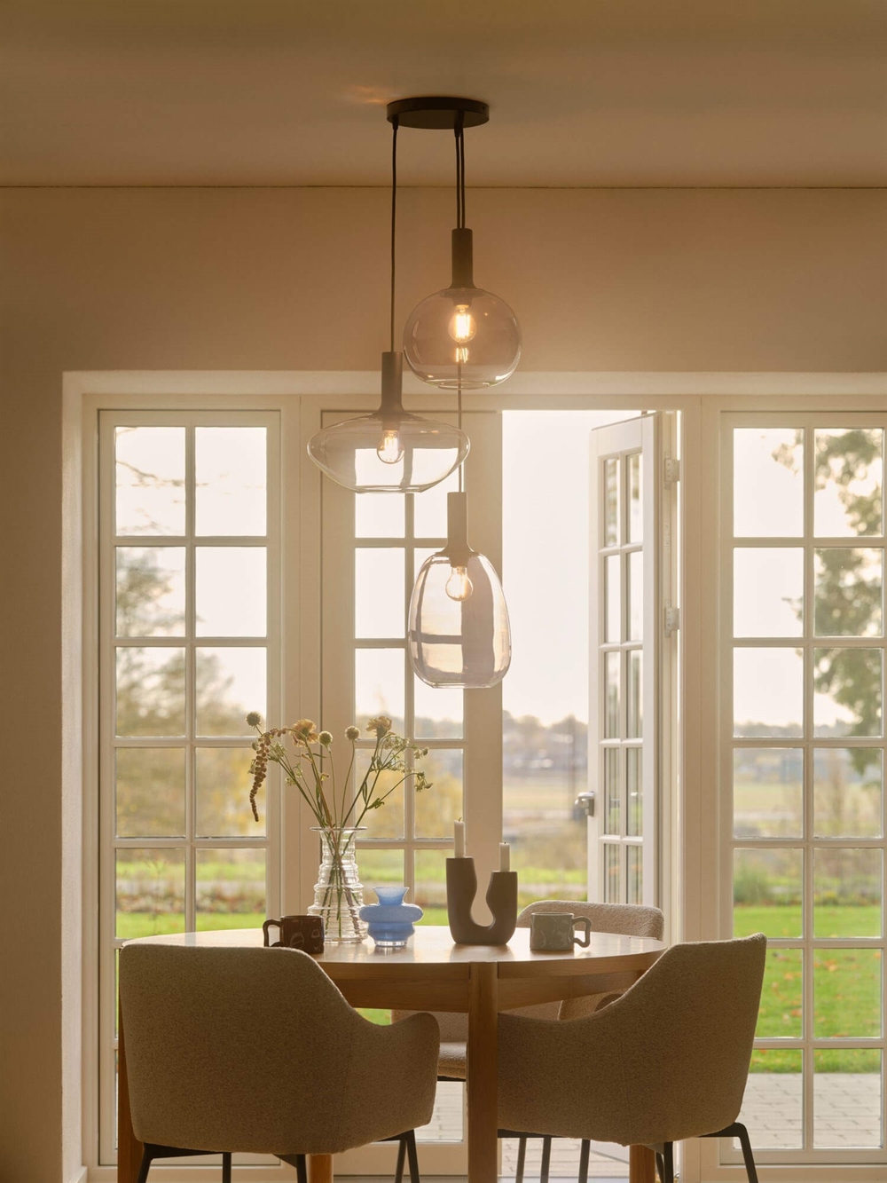 Denne Luana-baldakin fra Nordlux gør det muligt at hænge tre pendler i en klynge.