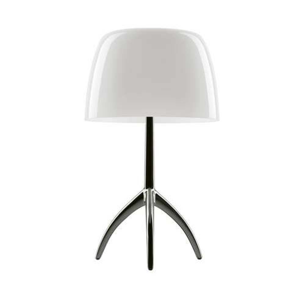 Foscarini Lumiere Grande bordlampe, poleret hvid med aluminiumsstel - designet af Rodolfo Dordoni.