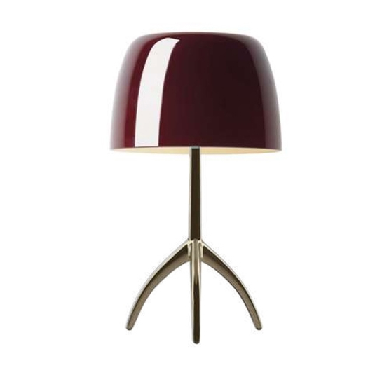 Lumiere Grande bordlampe fra Foscarini, poleret rød/pearl stel med dæmper.