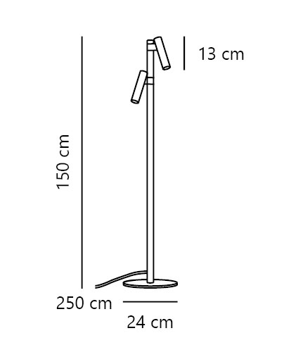 Mål: H150 x B2,5 cm, skærme: Ø3 cm, base: Ø24 cm