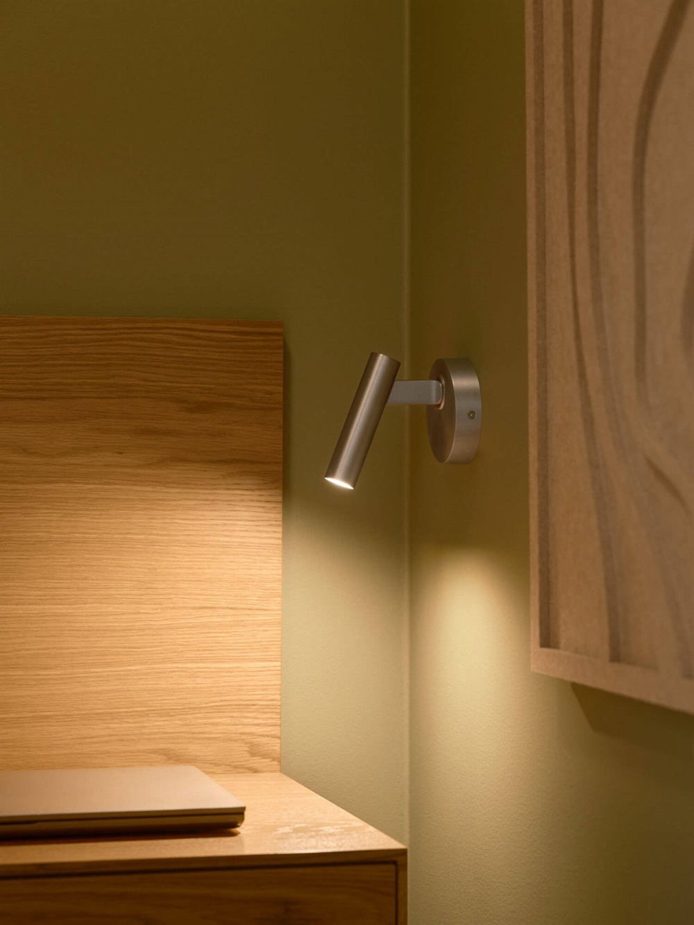 Væglampen Makoto er dansk design med et slankt og minimalistisk udtryk. Den varme børstede finish tilfører et blødt strejf til lampens industrielle look. Skærmen kan vippes 30° og drejes 320°, så lysretningen kan justeres, hvilket gør den smukke lampe velegnet som læse- eller arbejdslys.