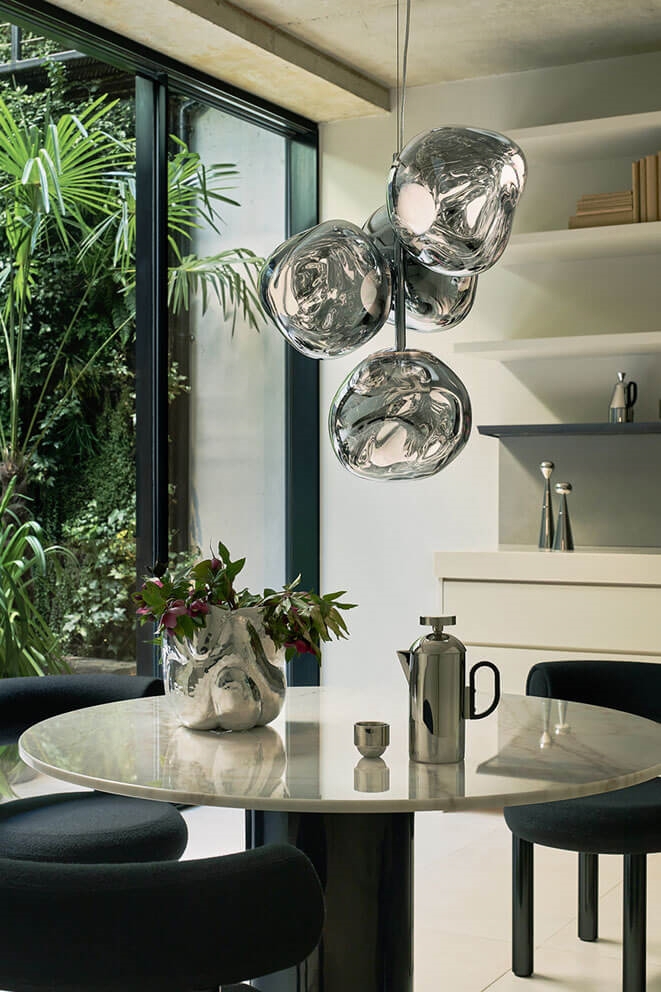 Tom Dixon Melt mini lysekrone, sølv - designet af Tom Dixon og Front