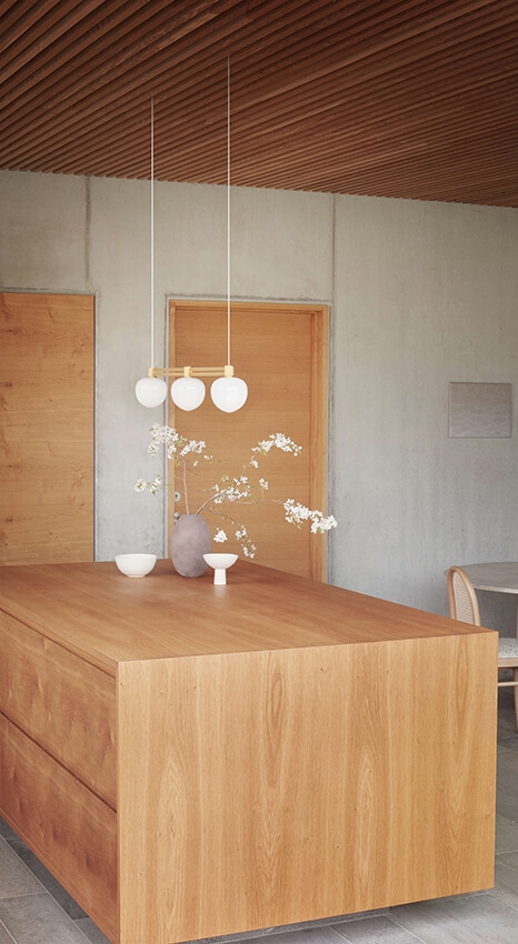 Pendlen består af et 3-lags opalt glas, der flot kombineres med detaljer i bronze. Det tykke opale glas afskærmer lyskilden, så det fremstår blændfrit og ensartet i rummet. Den ville passe perfekt over en køkkenø eller over et aflangt spisebord.