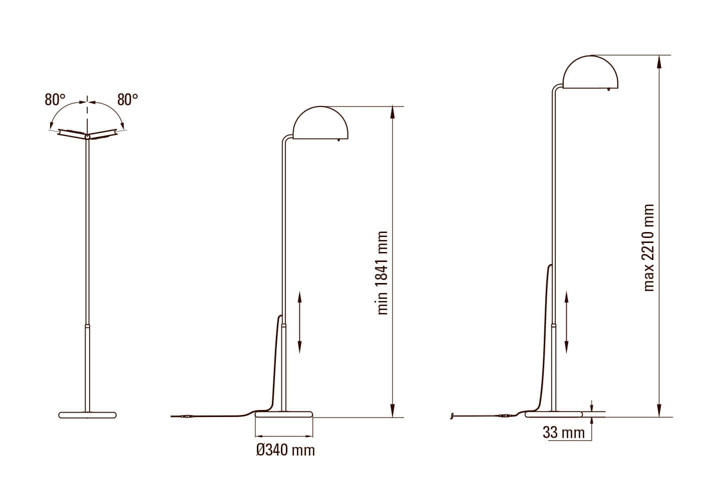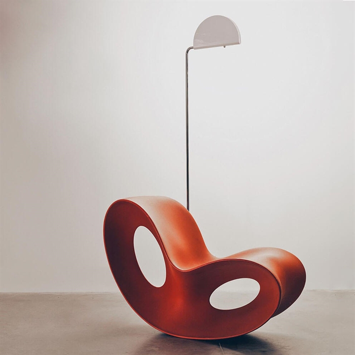 Den ikoniske Mezzaluna gulvlampe designet i 1975 af Bruno Gecchelin er en international bestseller og et referencepunkt inden for italiensk design. Denne relancerede version med den karakteristiske halvmåneformede skærm er udstyret med en integreret dæmpbar LED-lyskilde, der leverer op til 6000 lumen. Lysets farvetemperatur kan med medfølgende filtre ændres fra 3000K til 2700K eller 2400K.