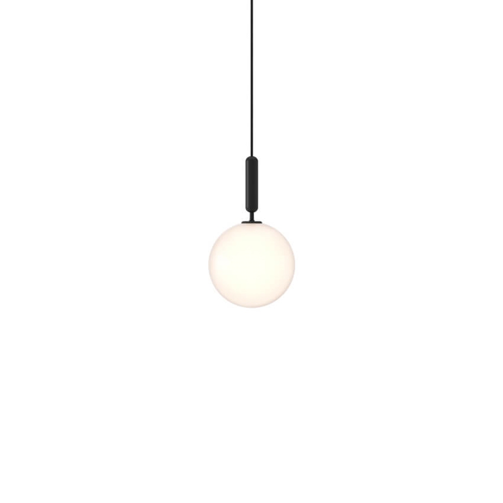 Det opale glas er mundblæst og står som en smuk kontrast til den dybe mørkegrå finish.