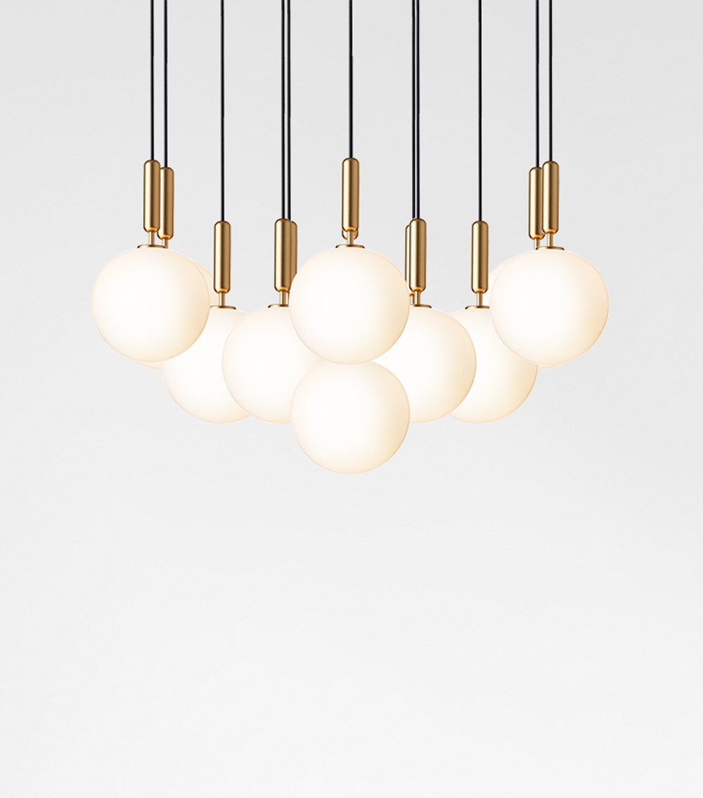 Består af 13 x Miira pendel + loftplade Ø90 cm