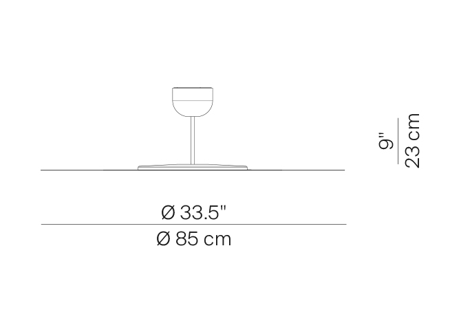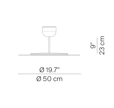 Millimetro er med sin fast stilk mellem loft og skærm en mellemting mellem en klassisk loftlampe og en pendel. Den tynde skærm med spejleffekt skjuler lyskilden, der udsender et ensartet blødt lys.