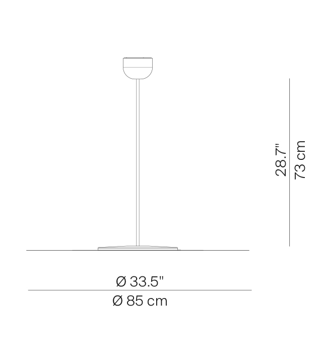 Millimetro er med sin fast stilk mellem loft og skærm en mellemting mellem en klassisk loftlampe og en pendel. Den tynde skærm med spejleffekt skjuler lyskilden, der udsender et ensartet blødt lys.