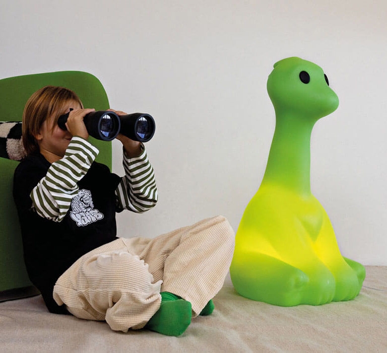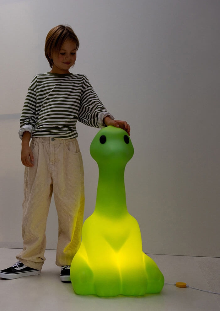 Big Dino børnelampe vil lyse op i enhver lille eventyrers hverdag og kan både fungere som en sjov lampe til børneværelset og som natlampe. Den søde dinosaurlampe er også oplagt at give i gave til f.eks. fødselsdage eller barnedåb.
