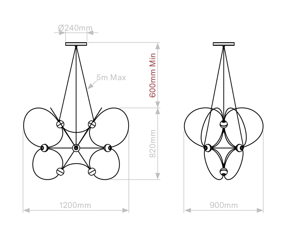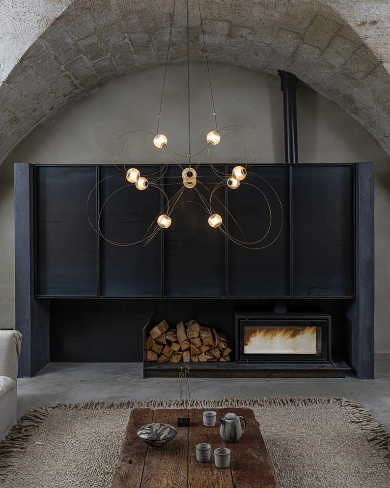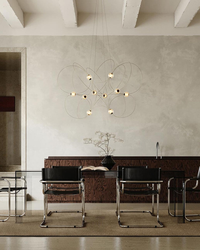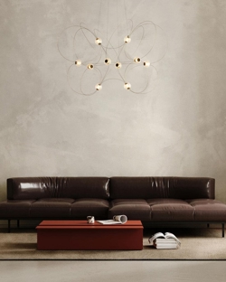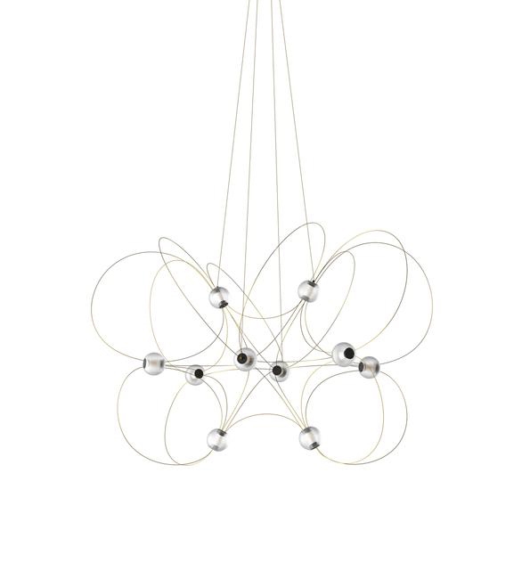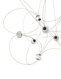 Munari udsender et kraftigt, men drømmeagtigt lys og findes med 6, 8 eller 10 kugleskærme og struktur i sort eller guld. Et oplagt valg til stuen og spisestuen eller en entré med højt til loftet.