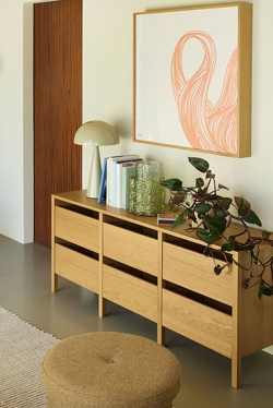 Denne bordlampe har et elegant design med sandfarvet finish og vil med sin svampelignende form bestående af skærm og kegleformet base passe godt ind i mange indretninger. Lampen er virkelig flot at stille på en reol eller i vindueskarmen og vil skabe blikfang alle steder.