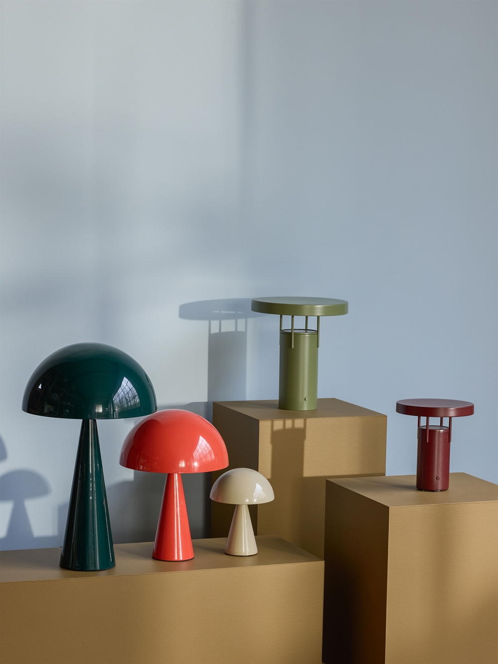 Bordlampen findes også i en større udgave og som genopladelig batterilampe i flere farver.