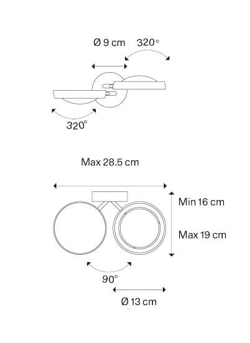 Den elegante væglampe har mange anvendelsesmuligheder, da den består af to lampehoveder, som hver især kan drejes 320° til siden og 90° op og ned. Benyt eksempelvis væglampen som læselampe ved sofaen eller sengen. Den er også oplagt i gangarealer, hvor den kan oplyse et maleri eller lign.