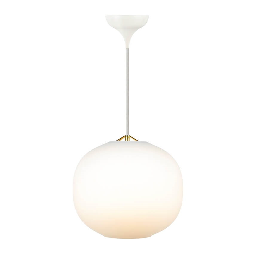 Den elegante og stilfulde pendel kaster et rart lys ud i rummet med den opale skærm, der får lyset til at fremstå aftonet og diffust. Navone er lavet af glas og metal, og har små detaljer af messing, der tilføjer en femininitet til pendlen.