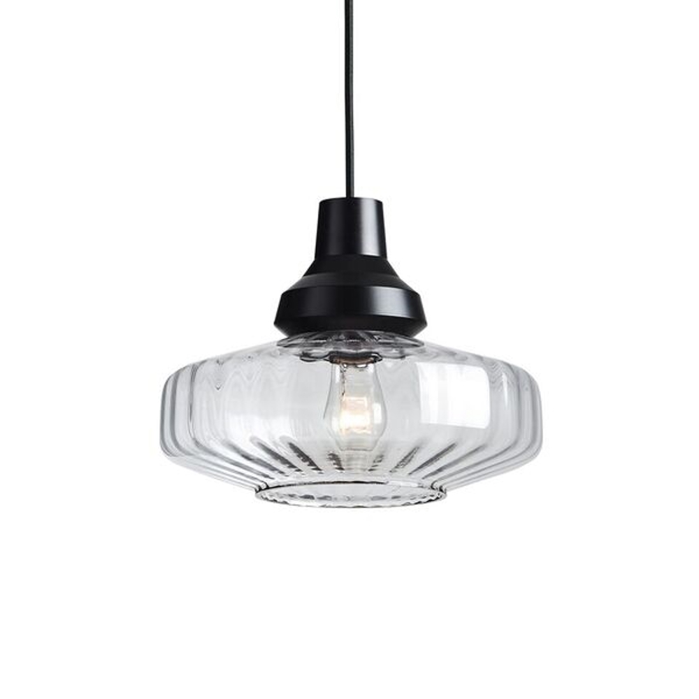 Skærm i smoke eller klart håndmalet glas med sølvkant og top i lakeret aluminium.