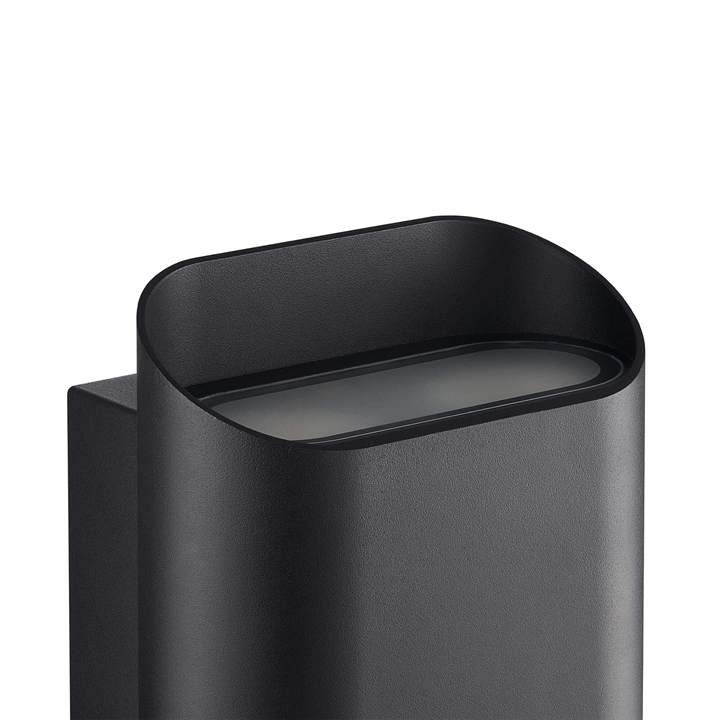 Nico Round 22 Maxi væglampens afrundede og vinklede design skaber sammen med evnen til at kaste lyset både opad og nedad en flot lyseffekt og gør lampen til en elegant tilføjelse til dit udemiljø. Nem at installere udendørs, hvor den moderne væglampe vil lyse smukt op i de mørke timer.