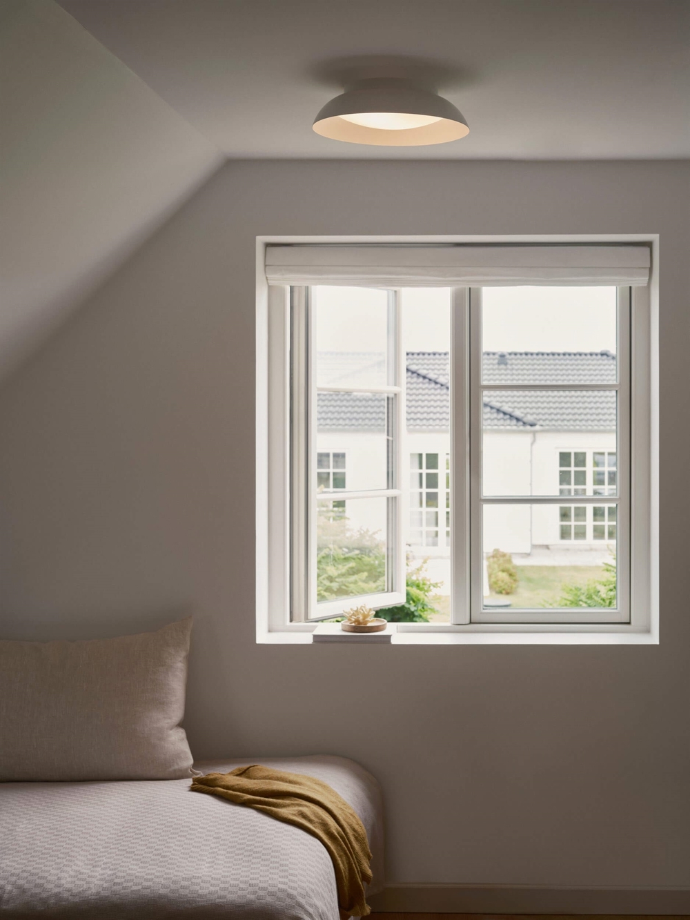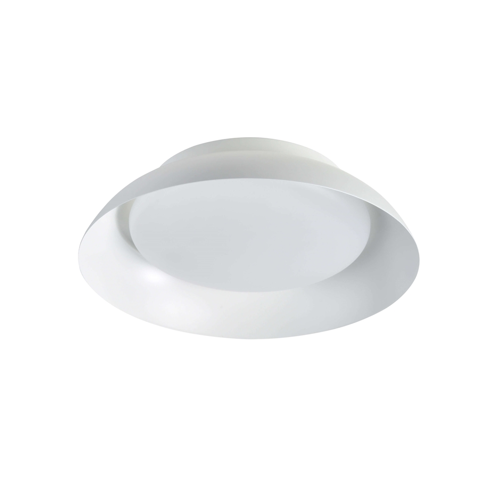 Nivora 38 med E27-fatning kan benytte som loftlampe eller væglampe og har en bred, buet skærm med en mat hvid overflade. Designet sikrer et jævnt og behageligt blændfrit lys til omgivelserne og gør lampen ideel til stuen, soveværelset eller entréen.