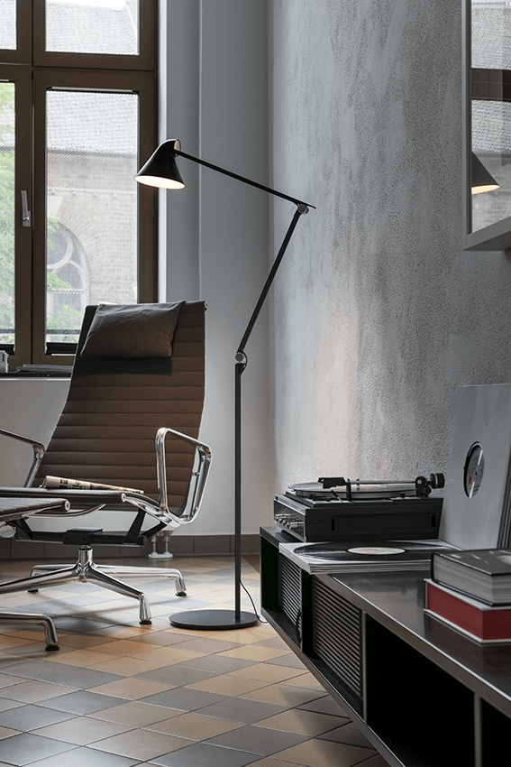 NJP gulvlampen er perfekt egnet som læselys ved lænestolen eller sofaen.