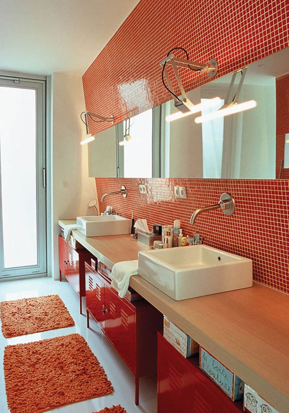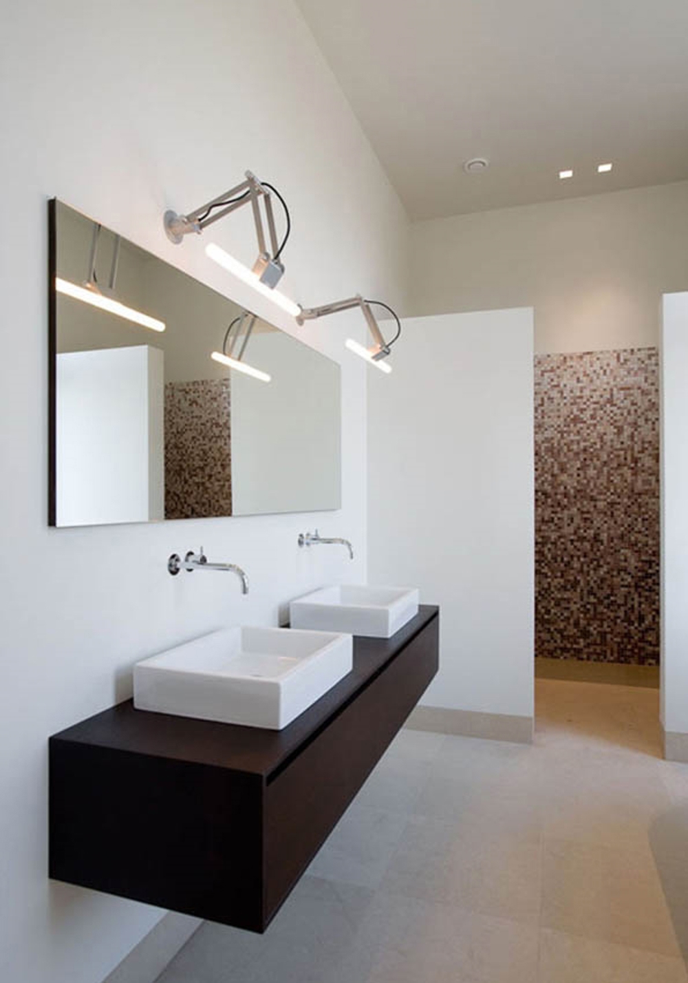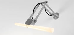 Justerbar væglampe fra Modular, som er ideel over et spejl. Nomad linestra har et enkelt design med synlig ledning, der giver et symmetrisk og industrielt udtryk. Lampen giver et funktionelt, diffust lys, der er perfekt til badeværelset