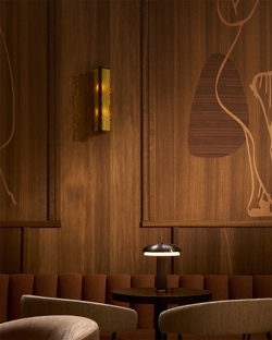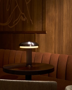 Den transportable bordlampe Noote har et blødt og overvejende indirekte lys, der skab en varm atmosfære. Den genopladelige batterilampe er designet til den intime atmosfære i den kombinerede restaurant og jazzklub Epicurus i København og er med inspiration fra jazzen en blanding af nostalgi og modernitet med en tidløs elegance fra 1930'ernes design i en moderne fortolkning.