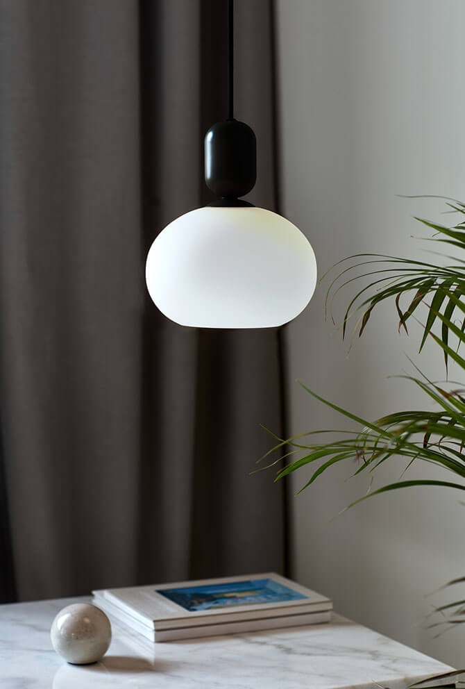 Pendlen Notti 20 forener et tidløst nordisk udtryk med bløde organiske former og er et æstetisk dansk design. Lampen fremstår harmonisk med den opalhvide mundblæste glasskærm, der smukt møder en mat metaltop - et design der løfter indretningen i både stue, køkken og spiseområde.