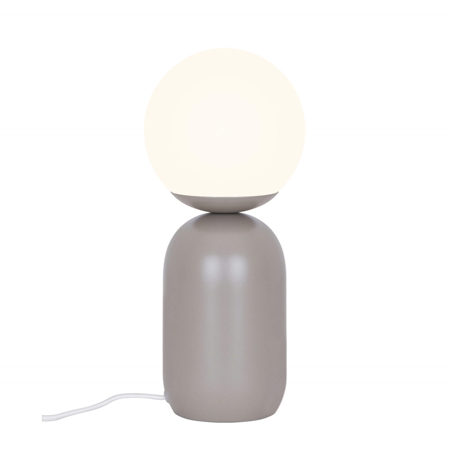 Bordlampen Notti forener et tidløst nordisk udtryk med bløde organiske former og er et æstetisk dansk design. Lampen fremstår harmonisk med den matte metalbase som raffineret kontrast til den opalhvide mundblæste glasskærm – et design der tilfører både visuel varme og et blødt diffust lys til rummet.