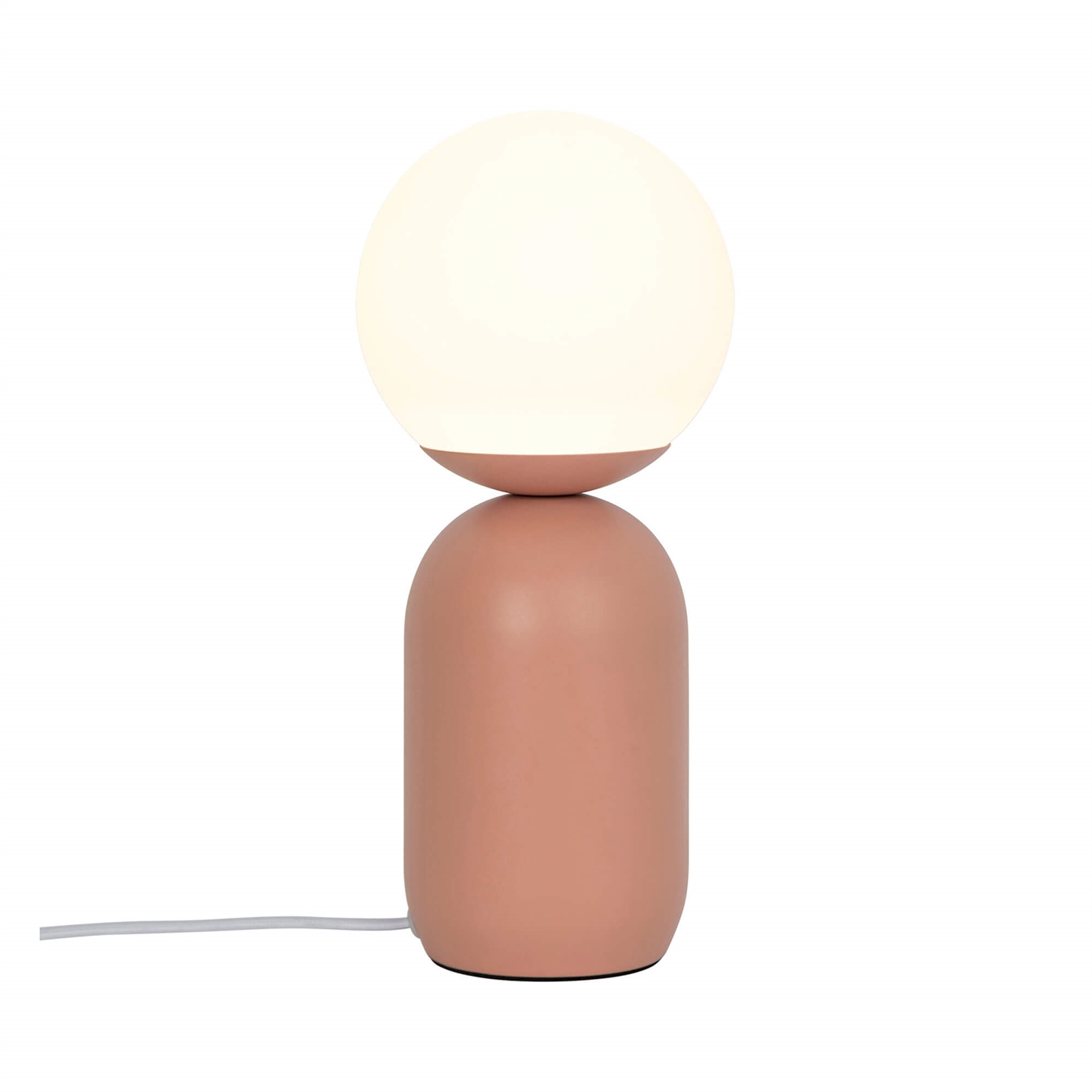 Bordlampen Notti forener et tidløst nordisk udtryk med bløde organiske former og er et æstetisk dansk design. Lampen fremstår harmonisk med den matte metalbase som raffineret kontrast til den opalhvide mundblæste glasskærm – et design der tilfører både visuel varme og et blødt diffust lys til rummet.