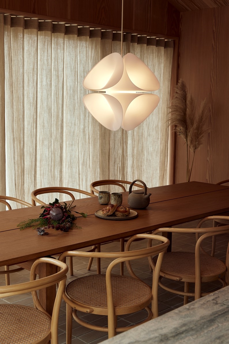 Pendlen Nova er en skulpturel lampe, hvor form og lys er nøje afstemt for at skabe et harmonisk og stemningsfuldt udtryk. Designet tager udgangspunkt i principperne fra det gyldne snit, hvilket giver lampen en afbalanceret form med en rolig og sammenhængende æstetik.