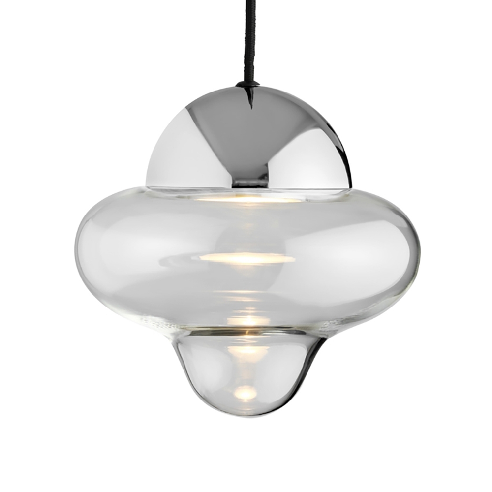 Nutty pendlen findes med klar, brun og smoke glas med enten sort, guldfarvet eller krom top, så der er en lampe til alle slags indretninger.