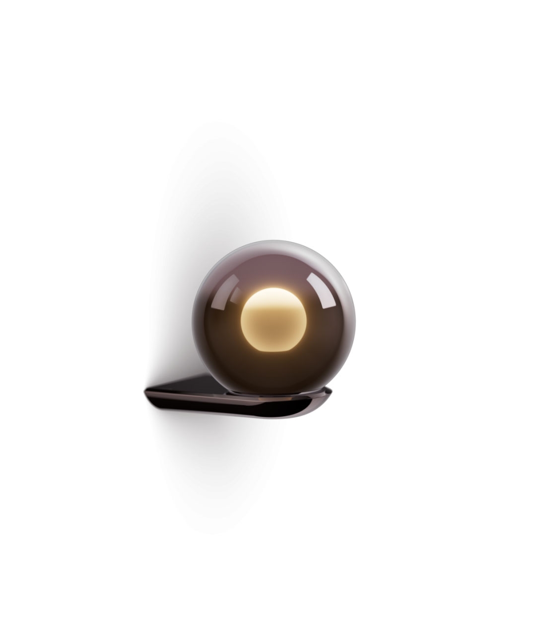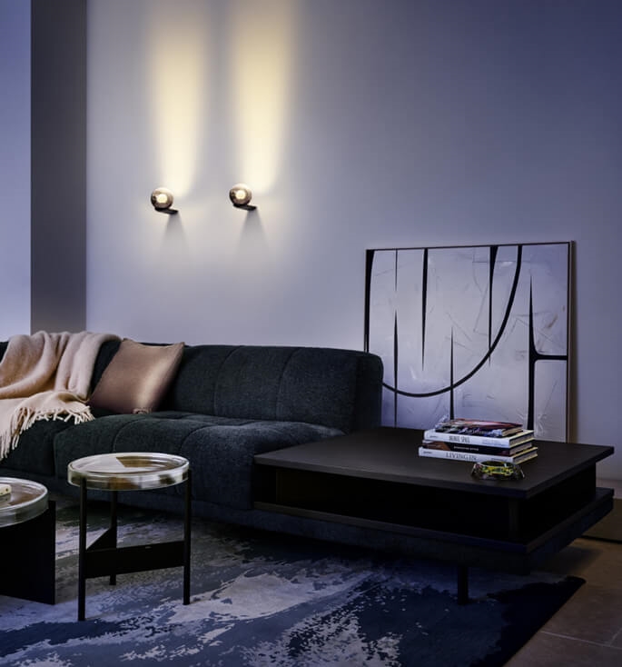 Occhio Luna Parete forvandler din væg til et kunstværk af lys. Den spejlede glaskugle reflekterer Occhio Fireball-lyset mod væg og loft og skaber en harmonisk, blød og stemningsfuld belysning, der fylder rummet med ro og magi. Lampens metalliske PVD-coating giver en elegant glans, mens lyskilden svæver som en stigende måne og fremhæver omgivelserne på subtil og dynamisk vis.