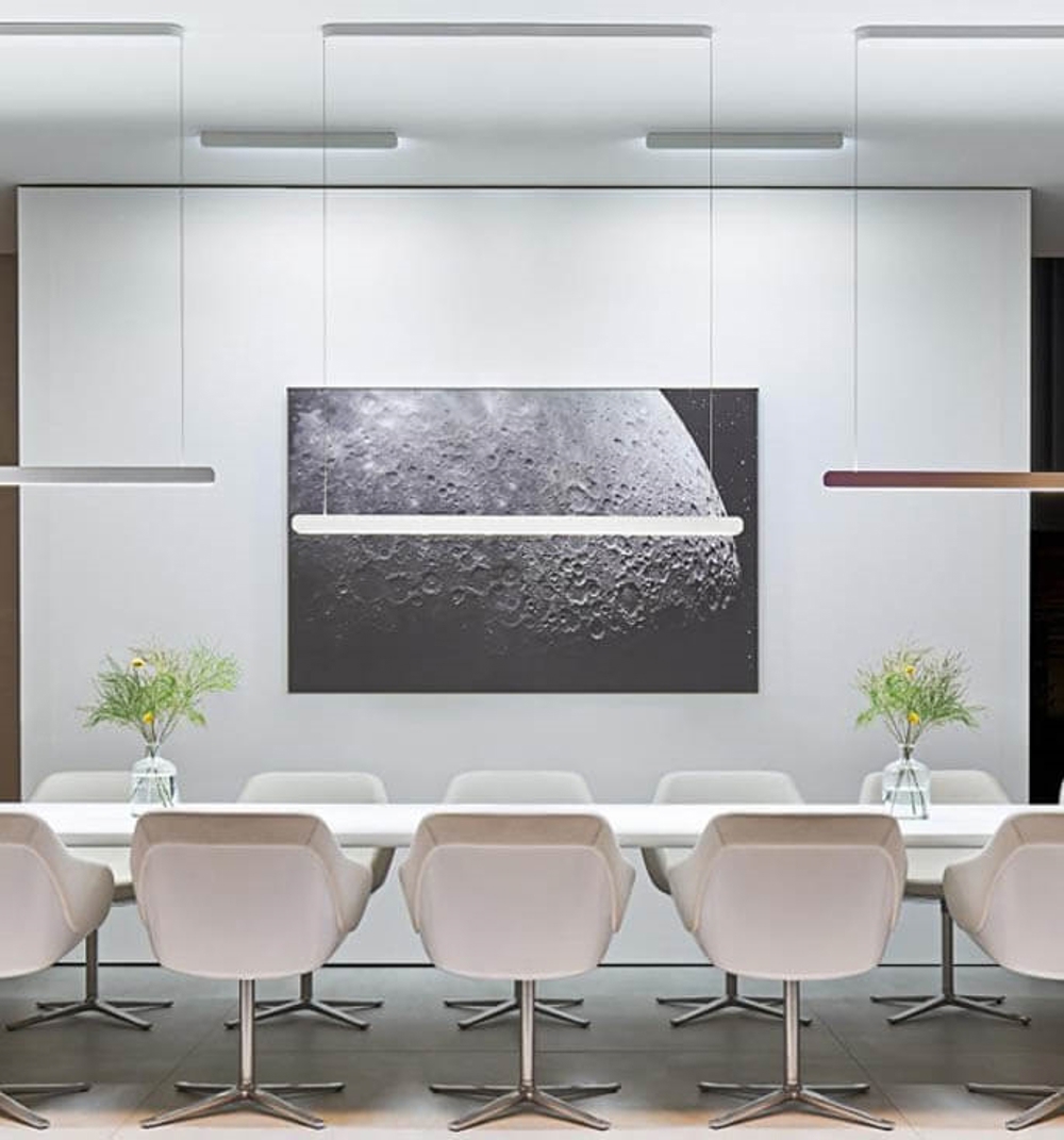 Mito Volo er en luksuriøs og stilren pendel med stor brugervenlighed og lysteknik i særklasse. Lampen har et perfekt design til over spisebordet, da den har en bred lysfordeling.