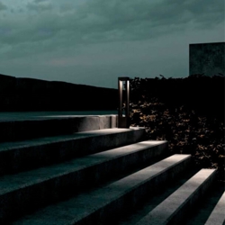 Odin er en sort moderne udendørslampe. Den er fremstillet i en sort trykstøbt aluminiumsramme med et klart hærdet glas og integreret LED