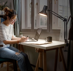 Den lange, justerbare arm og det bevægelige lampehoved gør det nemt at tilpasse lyset præcist efter behov – uanset om du arbejder ved computer, skriver i hånden eller fordyber dig i detaljeret arbejde. Lysstyrken kan reguleres trinløst, så du altid kan finde det rette niveau, fra blødt stemningslys til effektiv arbejdsbelysning.