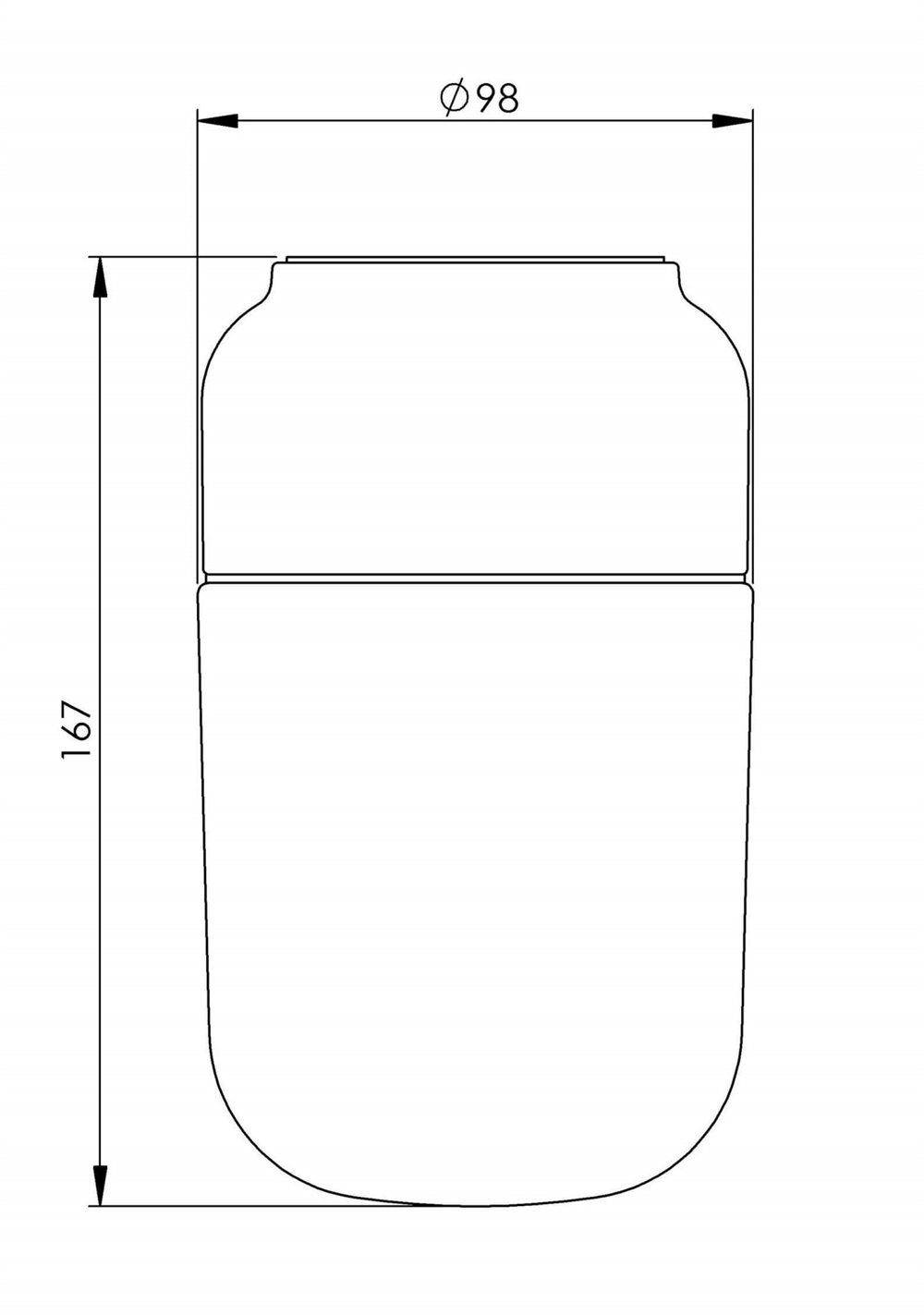 Mål: Ø98 x H167 mm