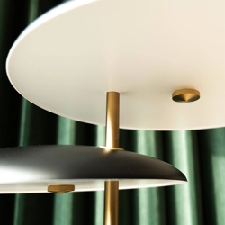 remstillet i massiv messing og spundet aluminium. Det giver lampen et eksklusivt udtryk, og man fornemmer straks det gode håndværk og de lækre materialer.
