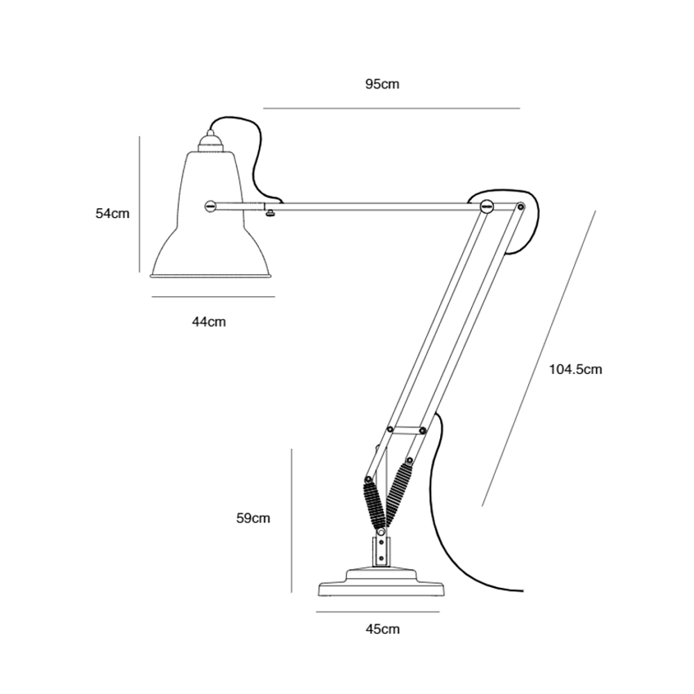 Anglepoise Original Giant 1227 gulvlampen vil gøre sig perfekt som lampe i stuen ved lænestolen, eller over spise- eller sofabordet.