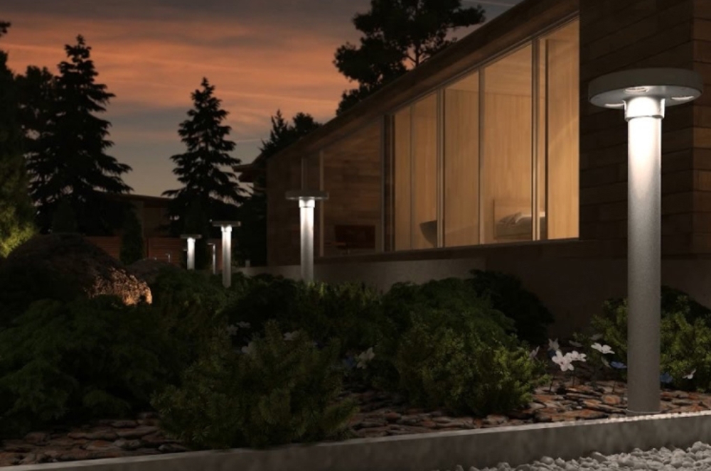 Udendørs pullert lygte i pulverlakeret trykstøbt aluminium.