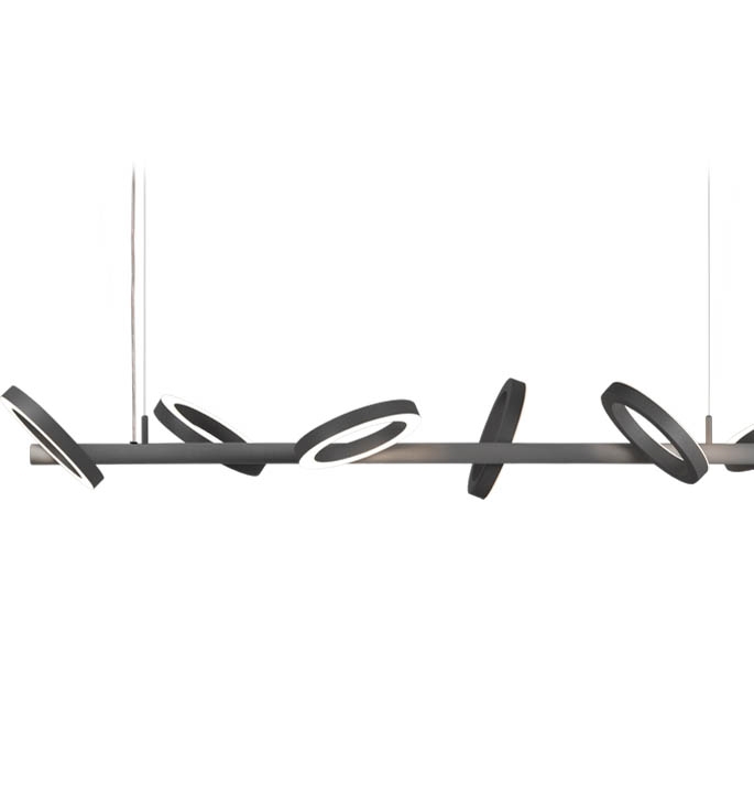 Den smukke og elegante Pallana pendel har et tilpasningsdygtigt design, og består af 6 ringe, som giver et flot cirkulært lys. Skærmene er justerbare og kan dreje kontinuerligt i alle retninger. Ringlygterne kan dertil drejes, så lyset både kan vende opad, nedad og rettes specifikt efter opgavebelysning.