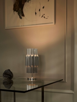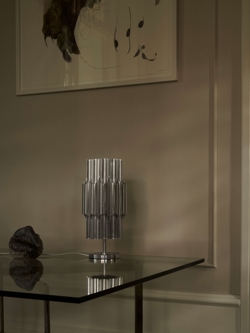 Den elegante bordlampe består af 12 aluminiumsrør, der flot lyses op af de åbne rør. Lysrørene får lyset til at vende både opad og nedad. Det opadgående lys sikrer et diskret omgivende lys, mens det nedadgående lys sikrer behagelig belysning ved bordet.