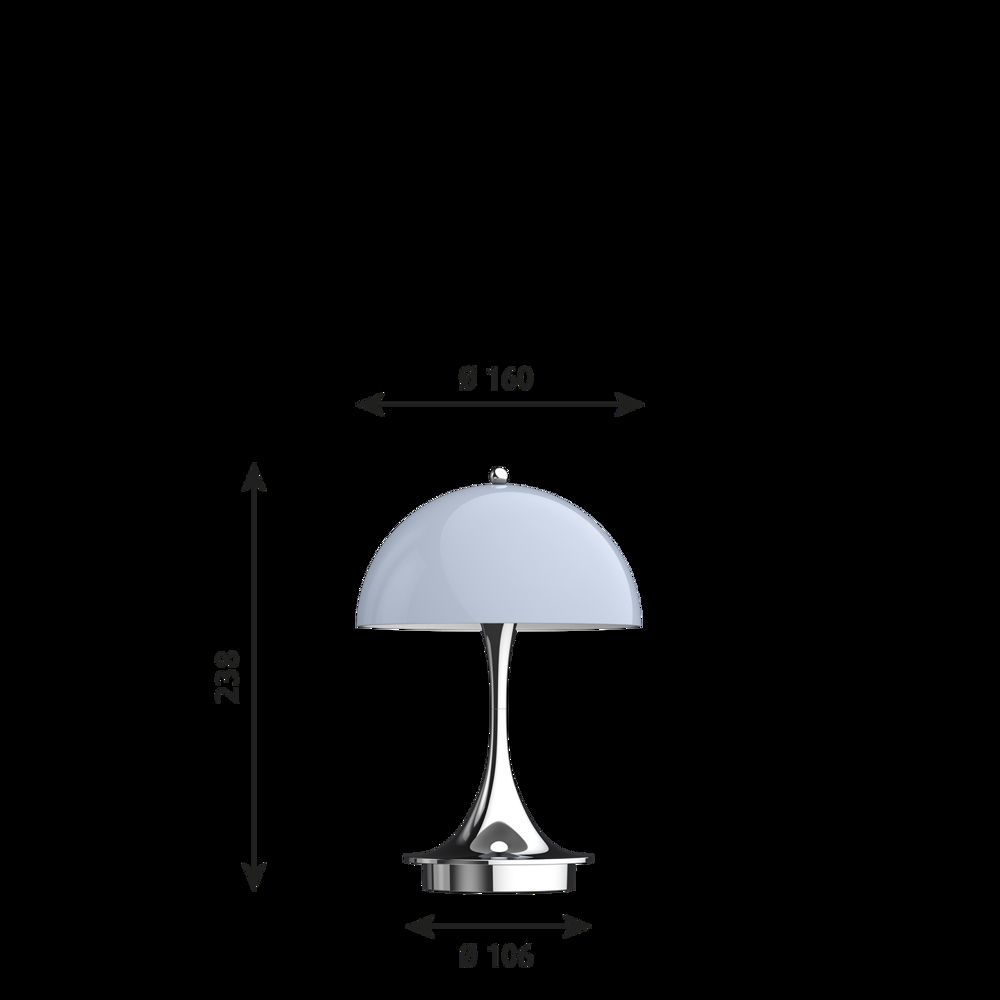 Panthella 160 Portable leveres med USB-kabel, men UDEN USB-adapter, som kan tilkøbes. Derudover er Panthella V2 kompatibel med standard USB-adapter (min. 1,5 A) og trådløse QI-ladere.