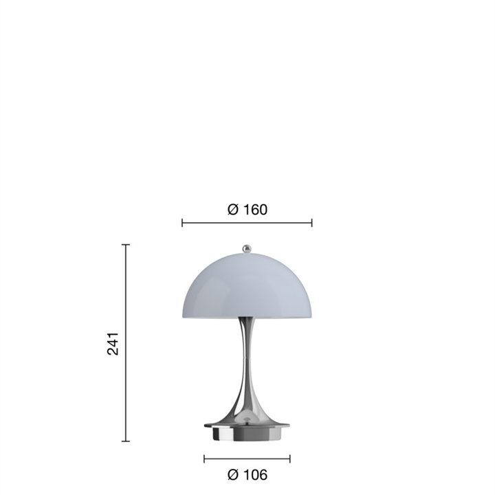 Louis Poulsen Panthella 160 Portable V3 bordlampe/batterilampe, krom/original blågrå opal - designet af Verner Panton