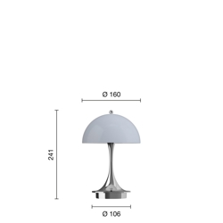 Panthella 160 Portable V3 bord- / batterilampe, krom/blågrå opal