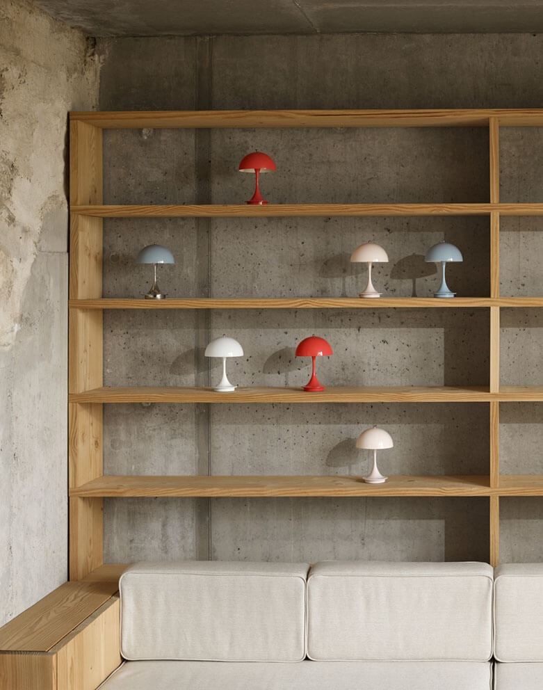 Panthella 160 Portabel V3 findes med flere forskellige finish. Varianterne med de originale Panthella-farver fra 1970'erne har opalskærme i grøn, orange, rød, brun eller blågrå.