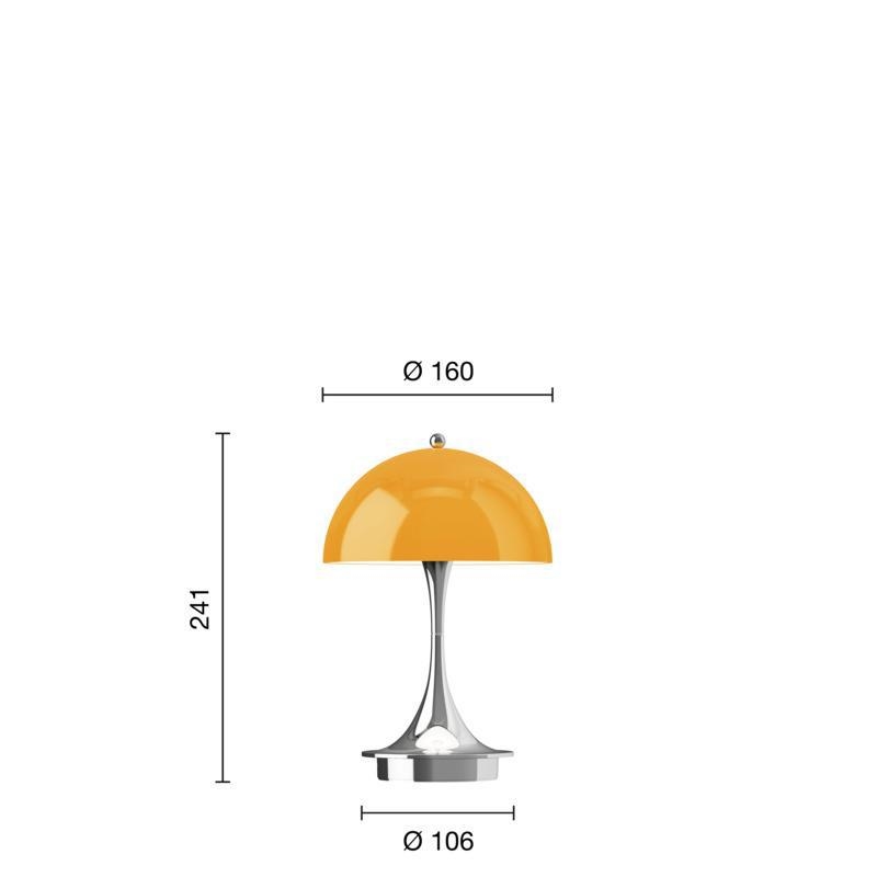 Louis Poulsen Panthella 160 Portable V3 bordlampe/batterilampe, krom/original orange opal - designet af Verner Panton