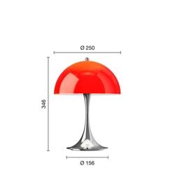 Louis Poulsen Panthella 250 Portable V3 bordlampe/batterilampe, krom/original rød opal - designet af Verner Panton