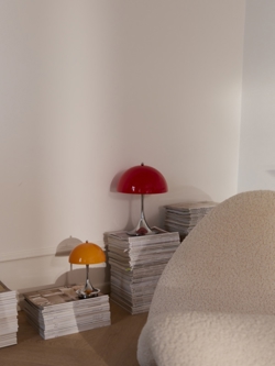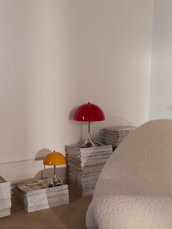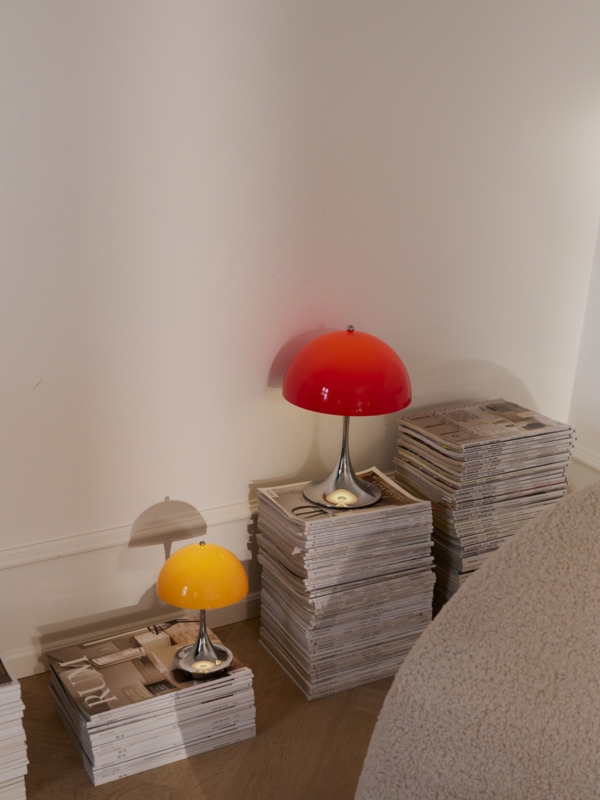 Den ikoniske Panthella lampe blev designet i 1971. Lampen er et klassisk eksempel på, hvordan Panton havde fornemmelse for behagelig belysning og for et tidløst og markant design, som passer ind i alle indretninger. Denne genopladelige variant med opalskærm i den originale røde Panthella-farve fra 1970'erne er introduceret i 2026 i anledning af, at Verner Panton her ville fejre 100-års fødselsdag.