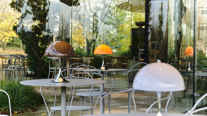 Den ikoniske Panthella lampe blev designet i 1971. Lampen er et klassisk eksempel på, hvordan Panton havde fornemmelse for behagelig belysning og for et tidløst og markant design, som passer ind i alle indretninger. Denne genopladelige variant med opalskærm i den originale brune Panthella-farve fra 1970'erne er introduceret i 2026 i anledning af, at Verner Panton her ville fejre 100-års fødselsdag.