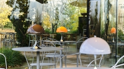 Panthella 250 Portable V3 bord- / batterilampe, krom/brun opal