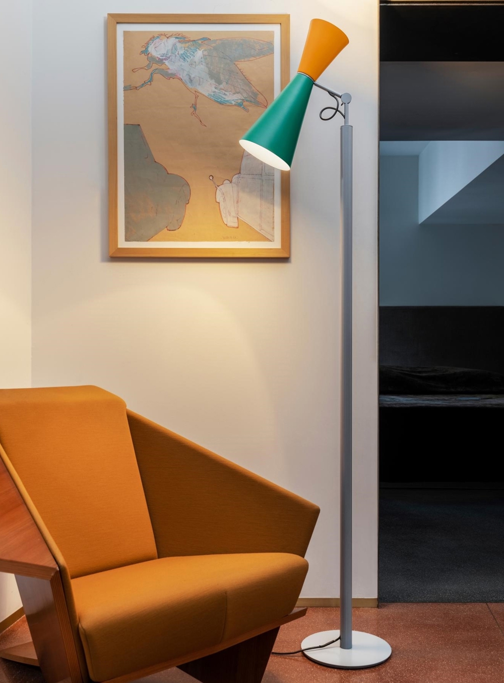 Parliament gulvlampe fra Nemo designet af Le Corbusier, grøn/gul